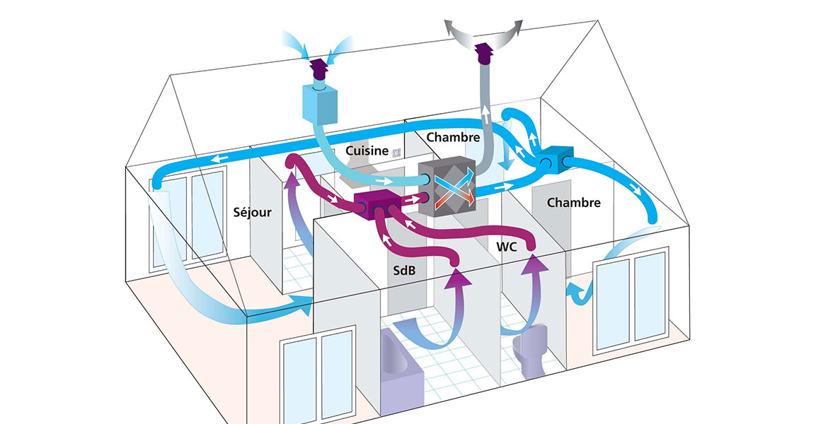 La ventilation "double flux" (système D, pour la norme NBN D50-001) consiste à organiser :